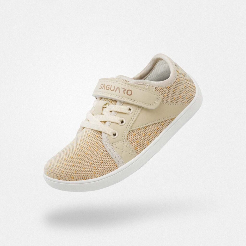 広めのつま先で、指をぎゅっと締め付けずに自然に動かせるキッズ向けベアフットシューズです。通気性の高い素材を使うことで、走り回って汗をかいてもムレにくく、長時間の遊びでも足元はさらりと快適な状態を保ちます。
